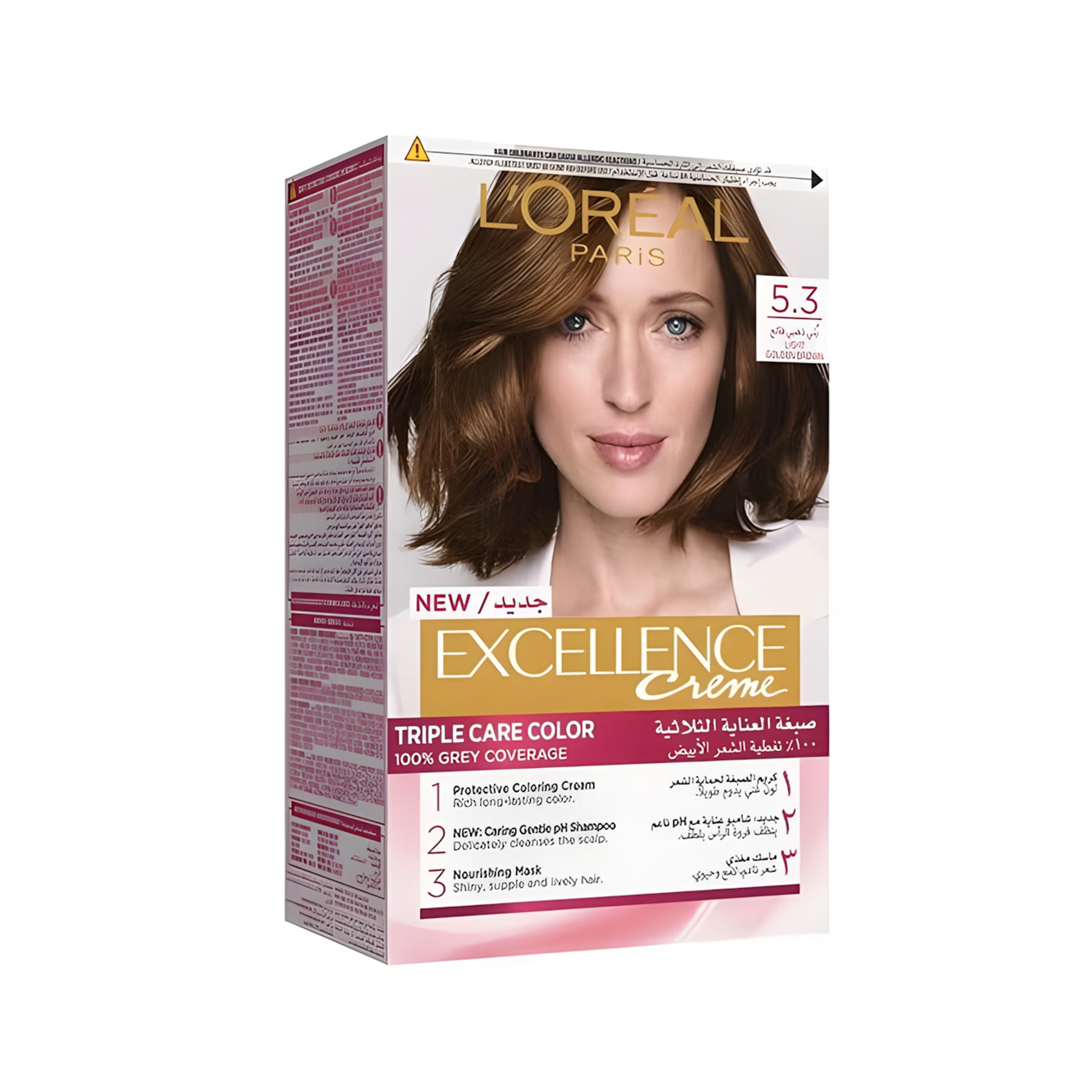 صبغة شعر لوريال إكسلنس كريم - 5.3 بني ذهبي فاتح - 192 مل