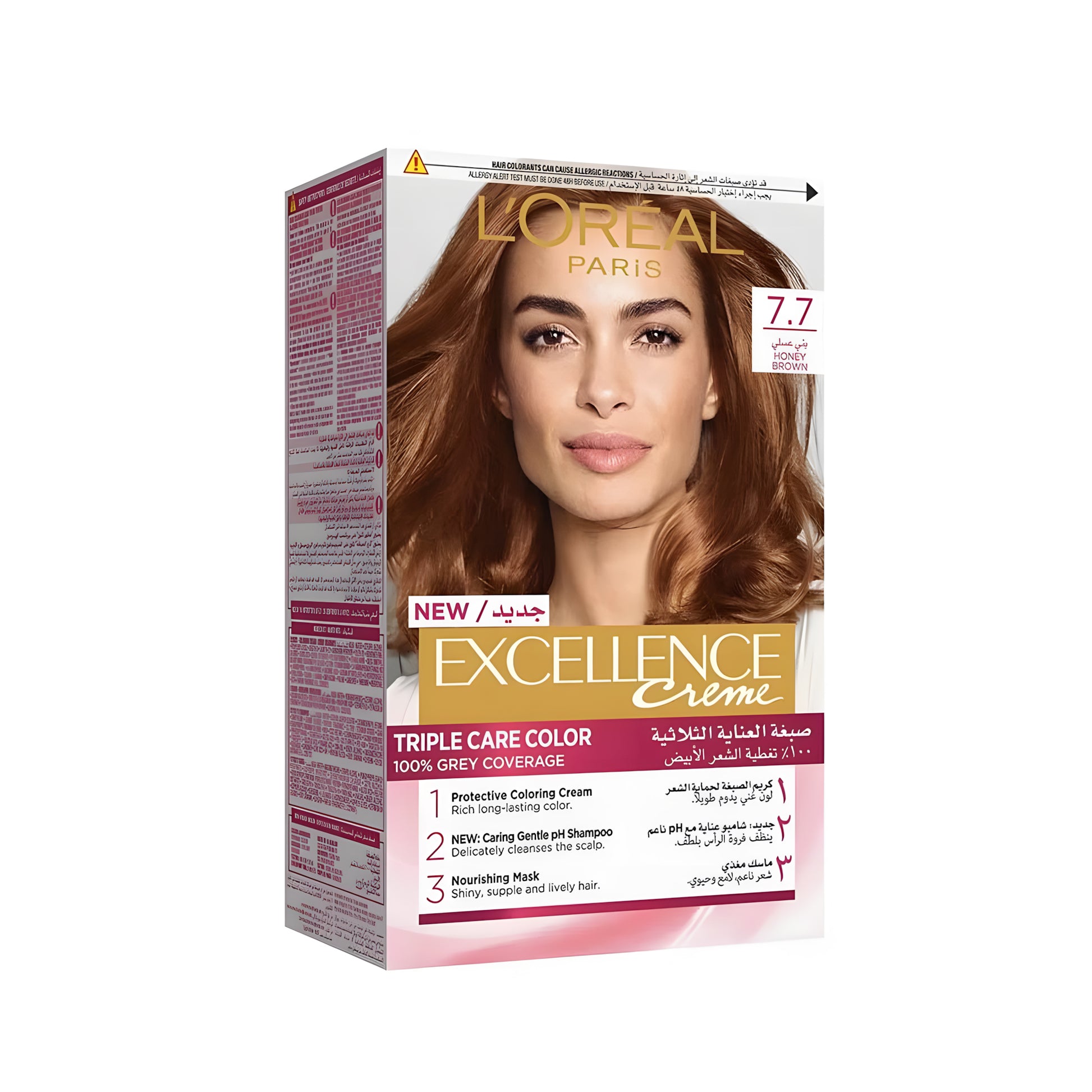 صبغة شعر لوريال باريس إكسلنس كريم - 7.7 بني عسلي