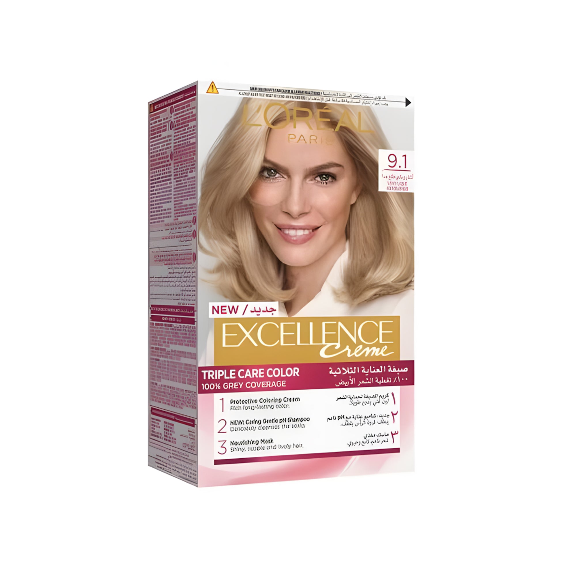 صبغة شعر لوريال باريس إكسلنس كريم - 9.1 أشقر رمادي فاتح جدًا