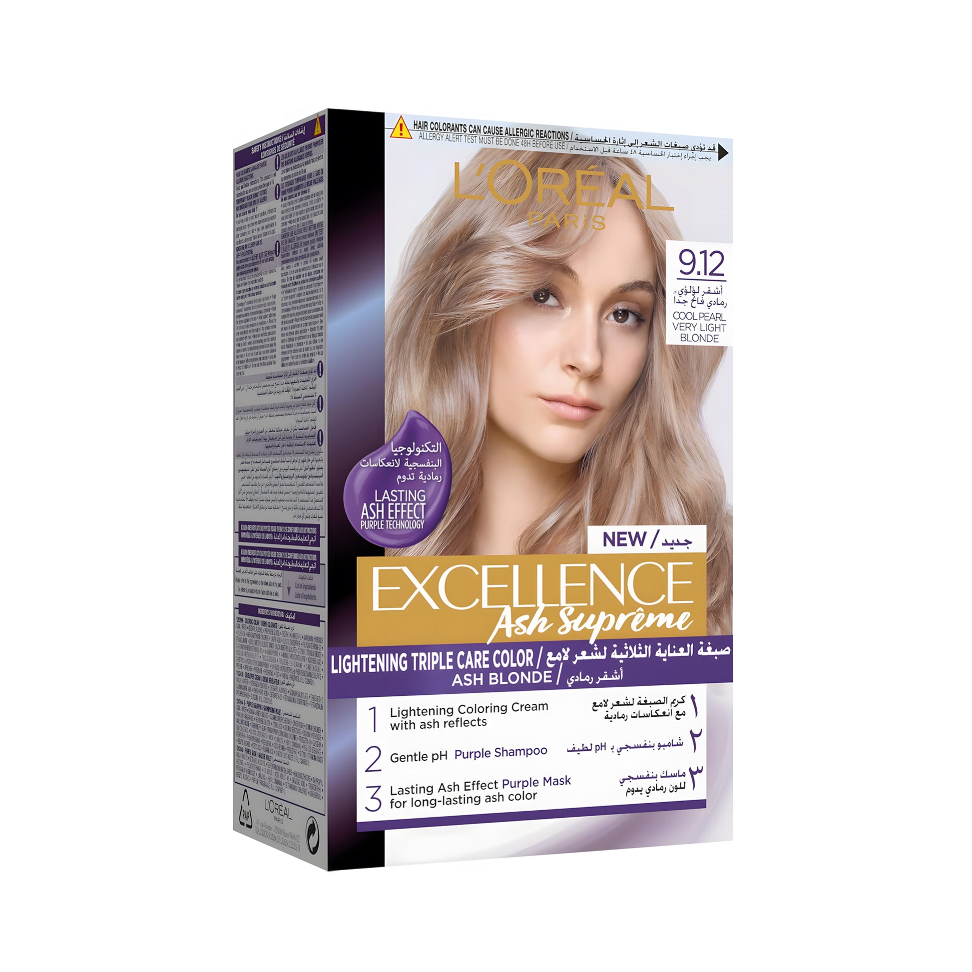 صبغة شعر لوريال باريس إكسلنس مع شامبو وقناع للشعر أرجواني - 9.12 لؤلؤي بارد أشقر فاتح جدًا