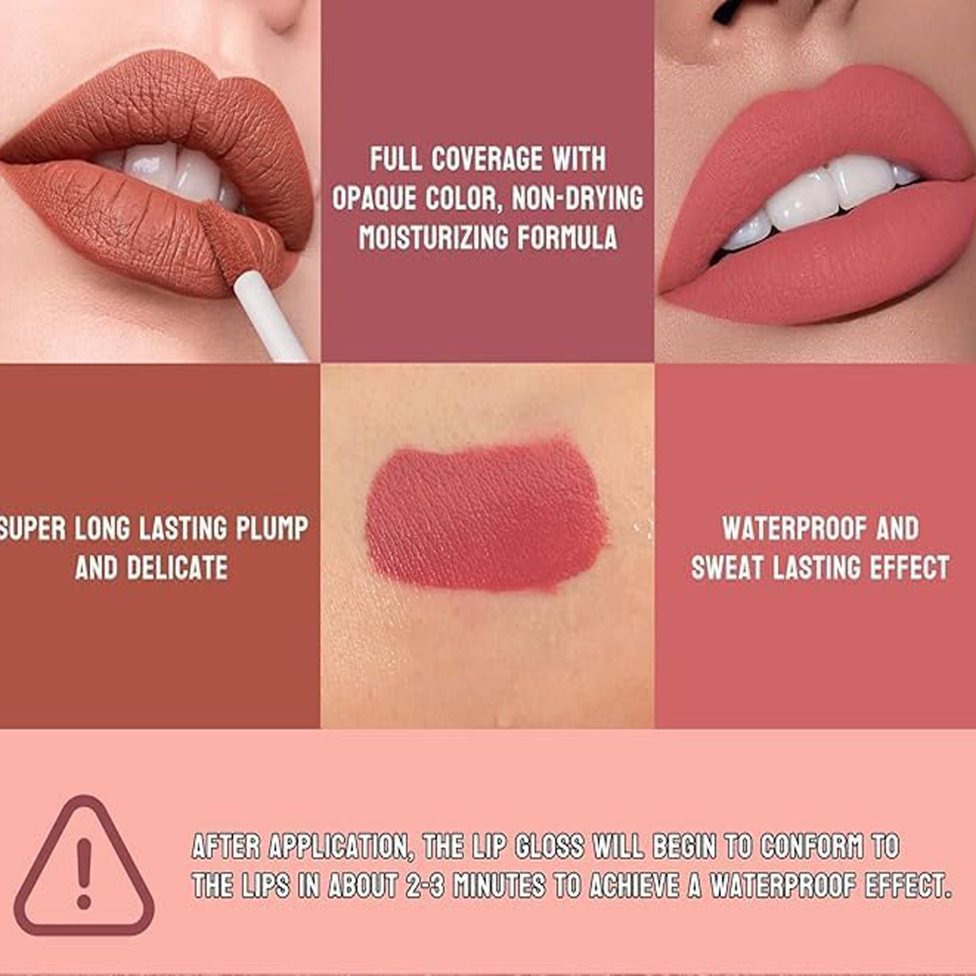 أحمر شفاه غير لامع للنساء، يدوم طويلاً، تغطية كاملة، ملمع شفاه سائل، غير لاصق، مقاوم للماء، لمسة نهائية ناعمة