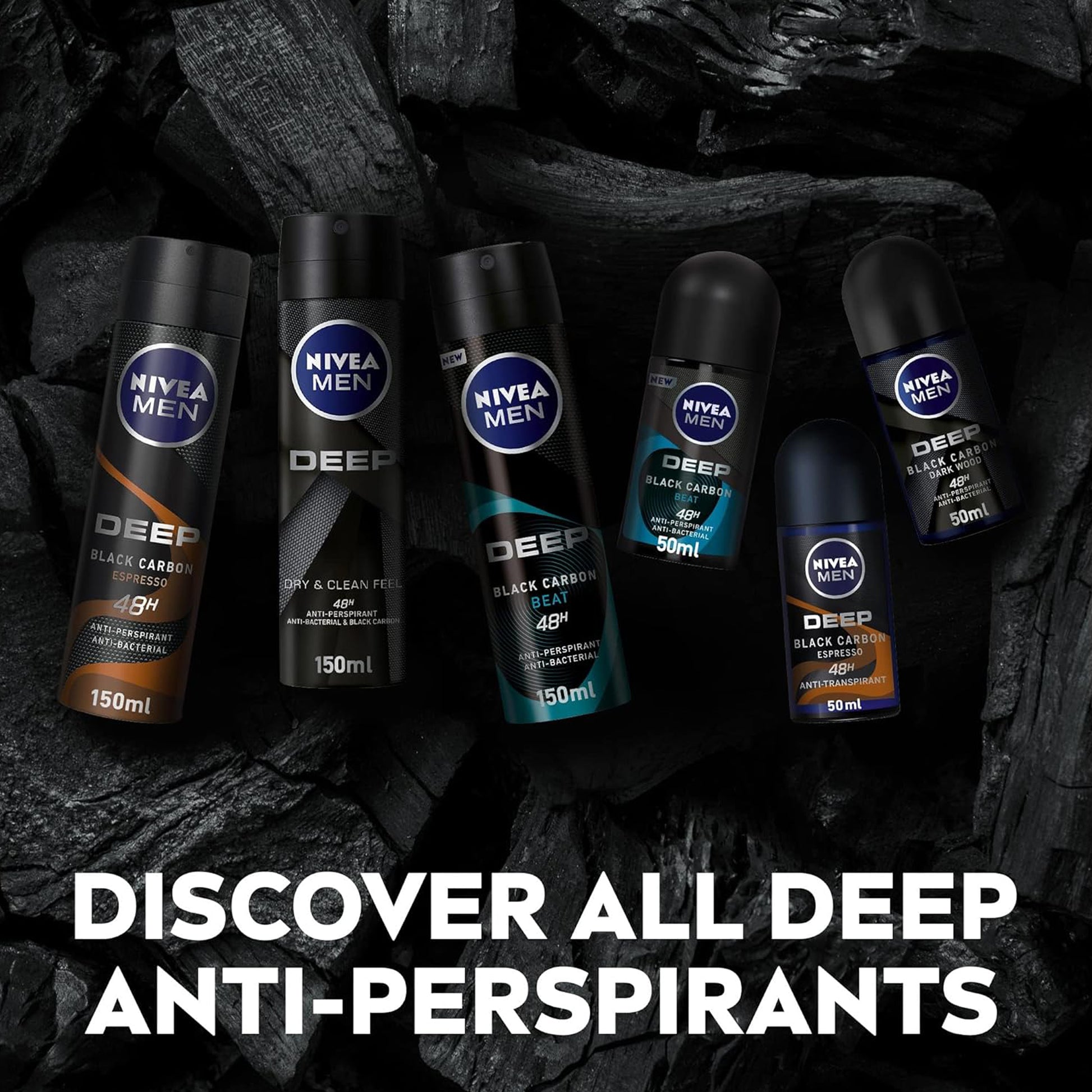 نيفيا مين بخاخ مضاد للتعرق للرجال، حماية تدوم 48 ساعة، مضاد للبكتيريا بالكربون الأسود العميق، برائحة الإسبريسو - 150 مل