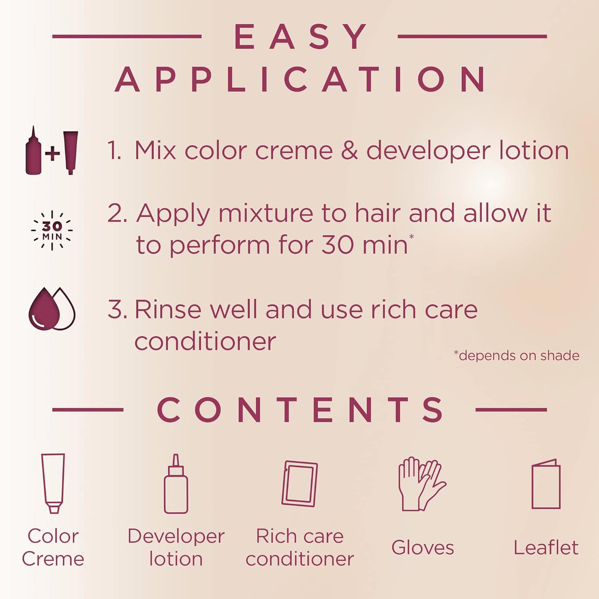 Long-lasting hold: The dye formula, rich in high-intensity pigments, penetrates deeply into the hair to lock in color and protect against fading for weeks.