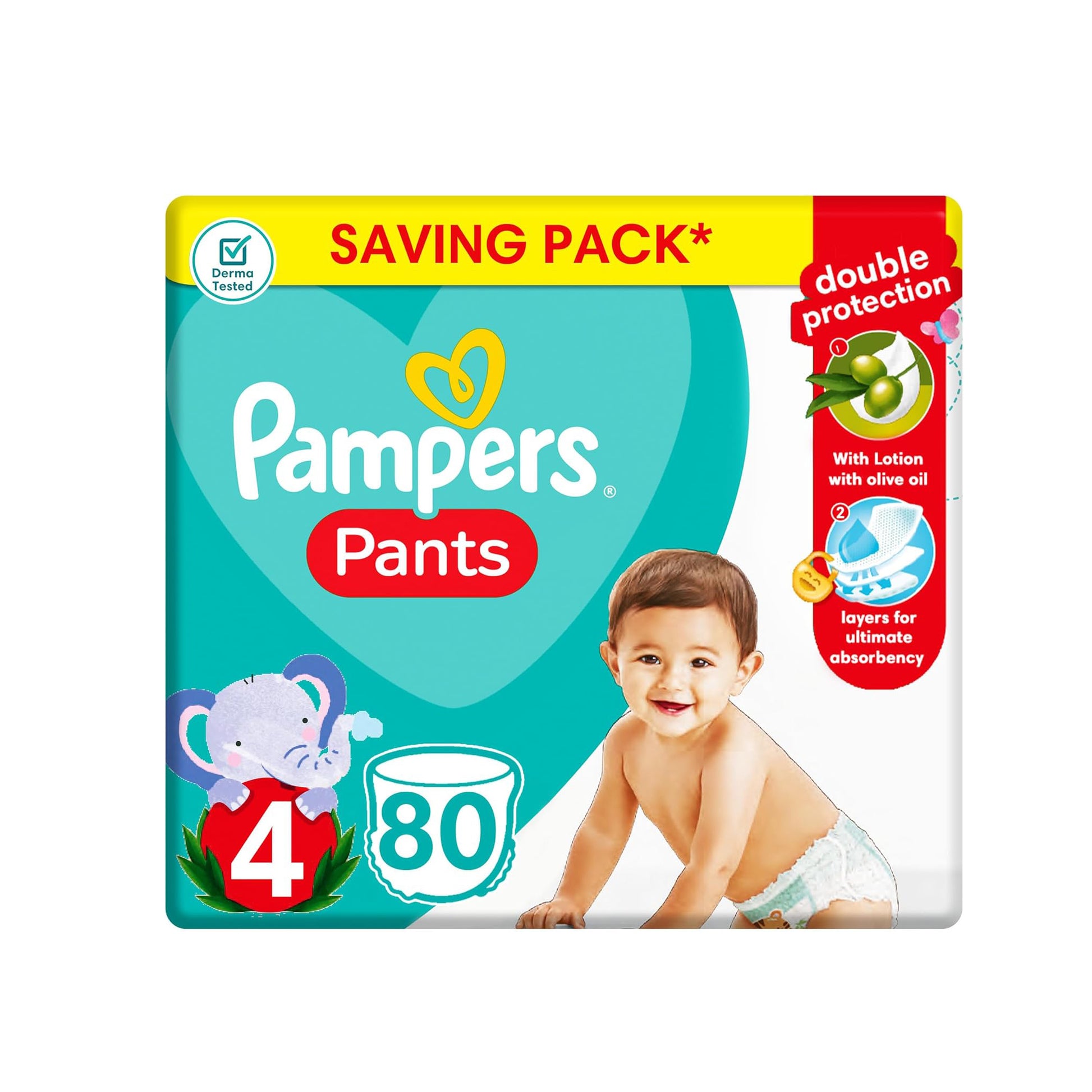 حفاضات بامبرز بانتس، مقاس 4، مع لوشن بزيت الزيتون، 80 حفاضة أطفال