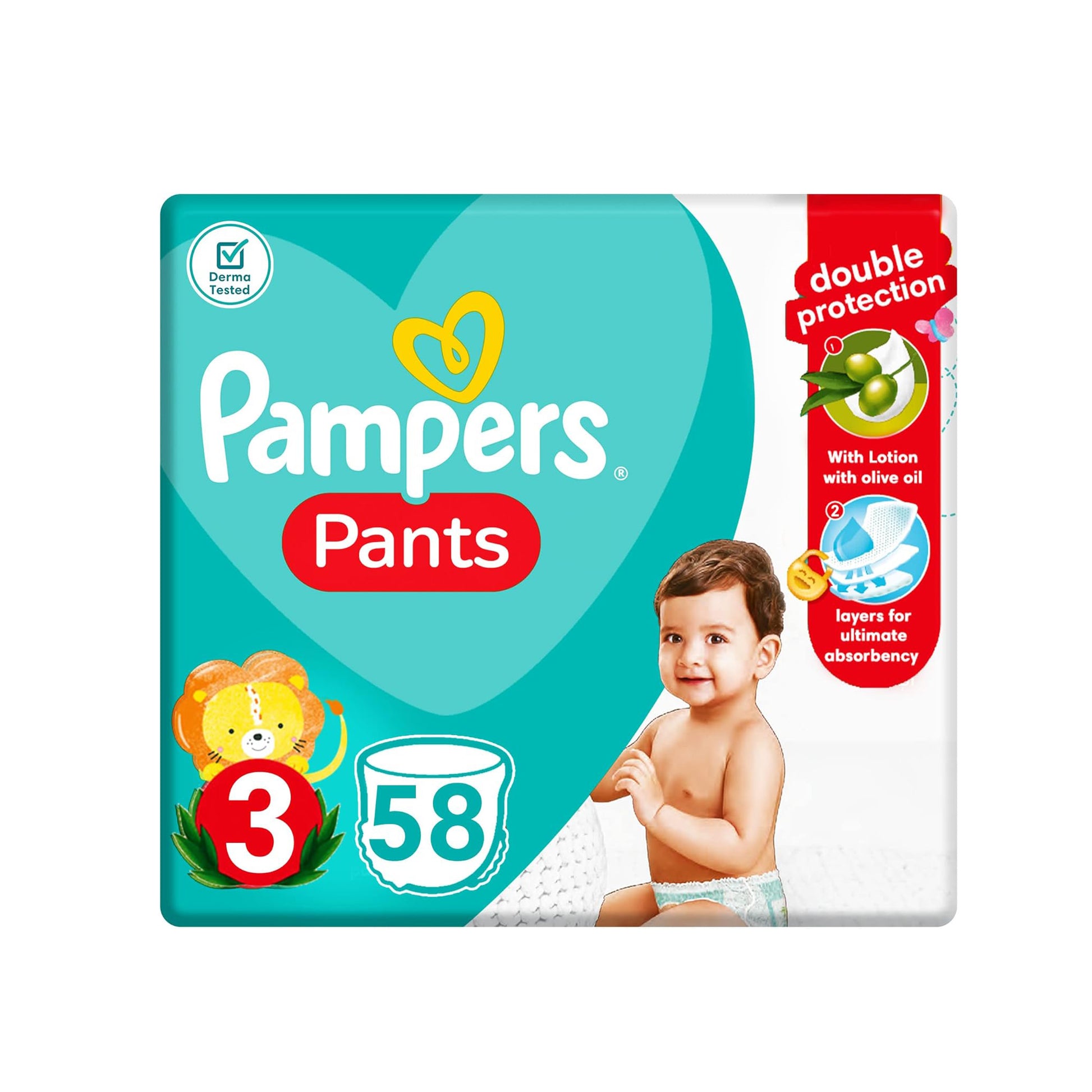 حفاضات بامبرز بانتس مع لوشن بزيت الزيتون، مقاس 3، 58 حفاضة أطفال