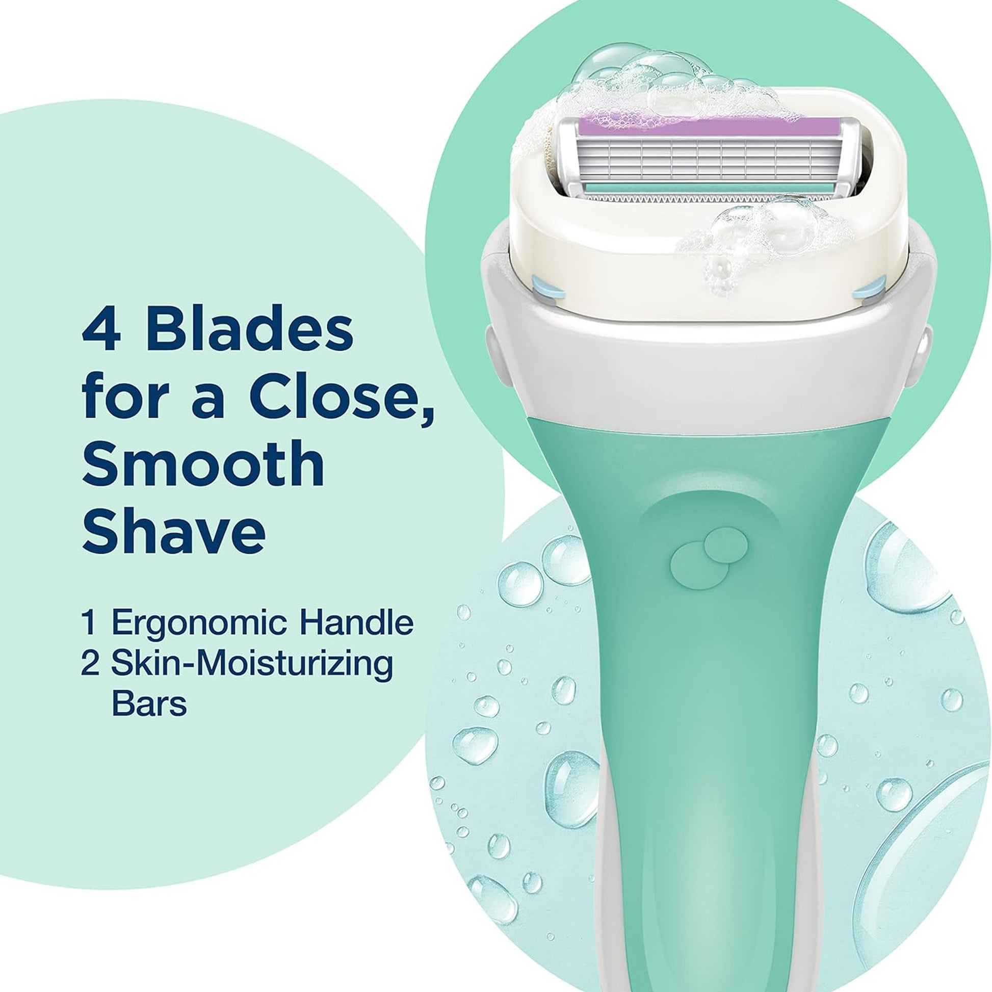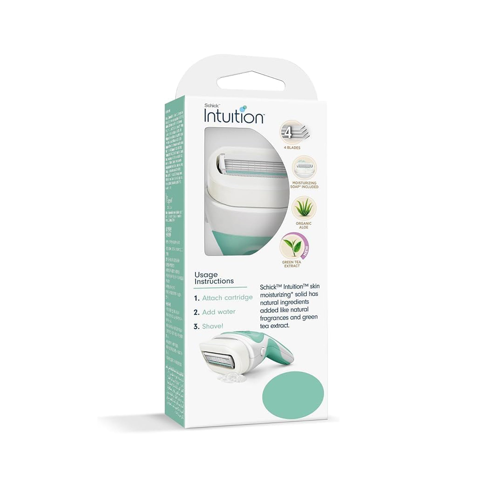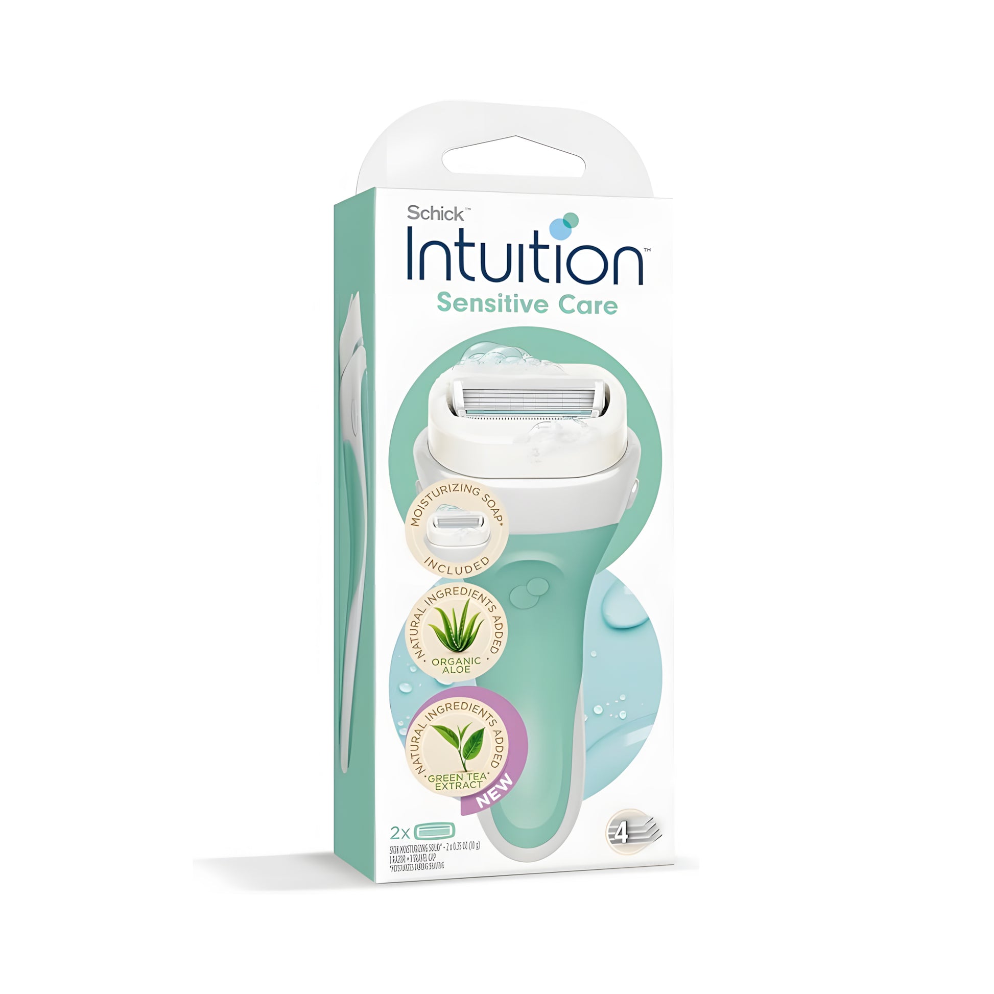 ماكينة حلاقة شيك إنتويشن للعناية الحساسة للنساء مع عبوتين إضافيتين لشفرات الحلاقة المرطبة بخلاصة الصبار الطبيعي