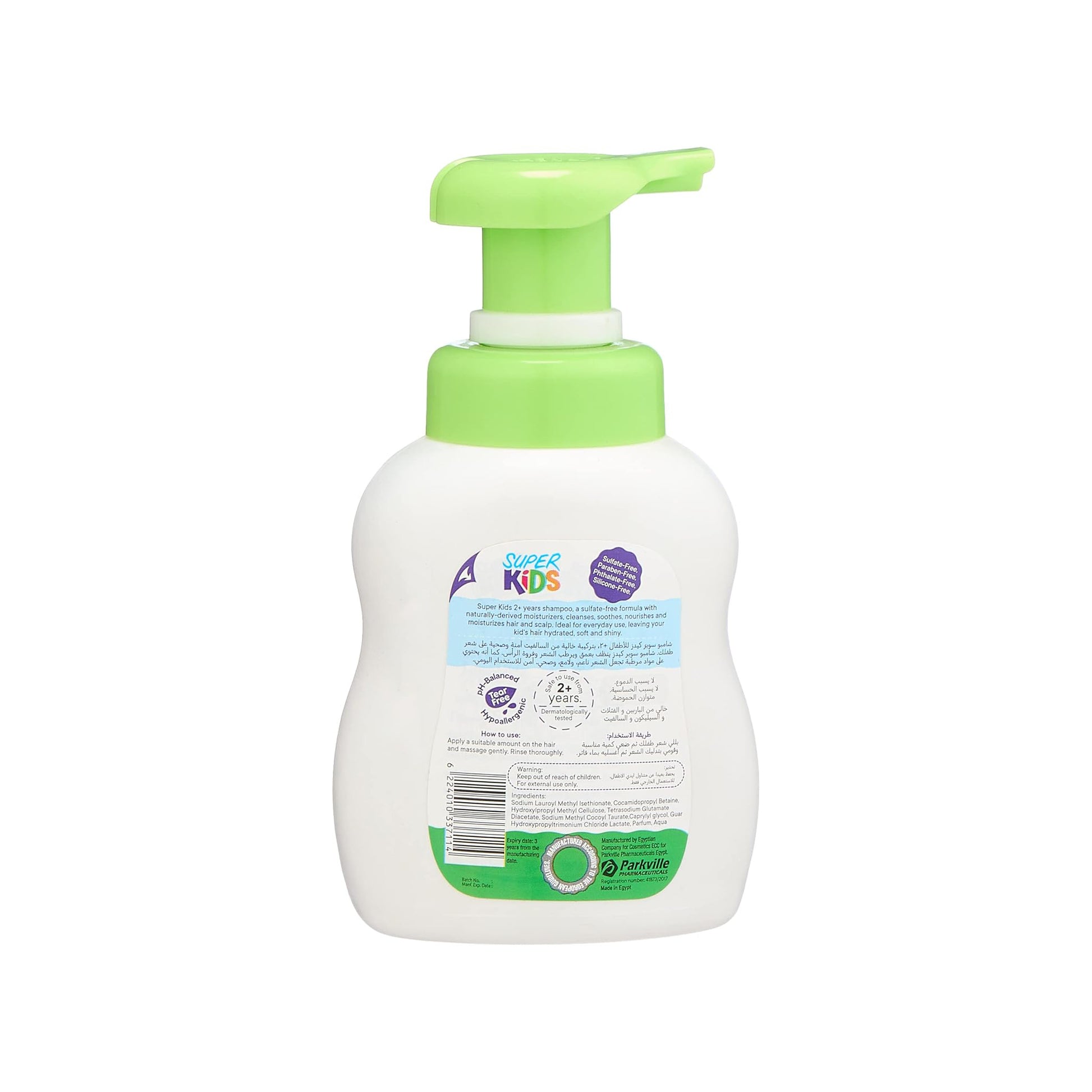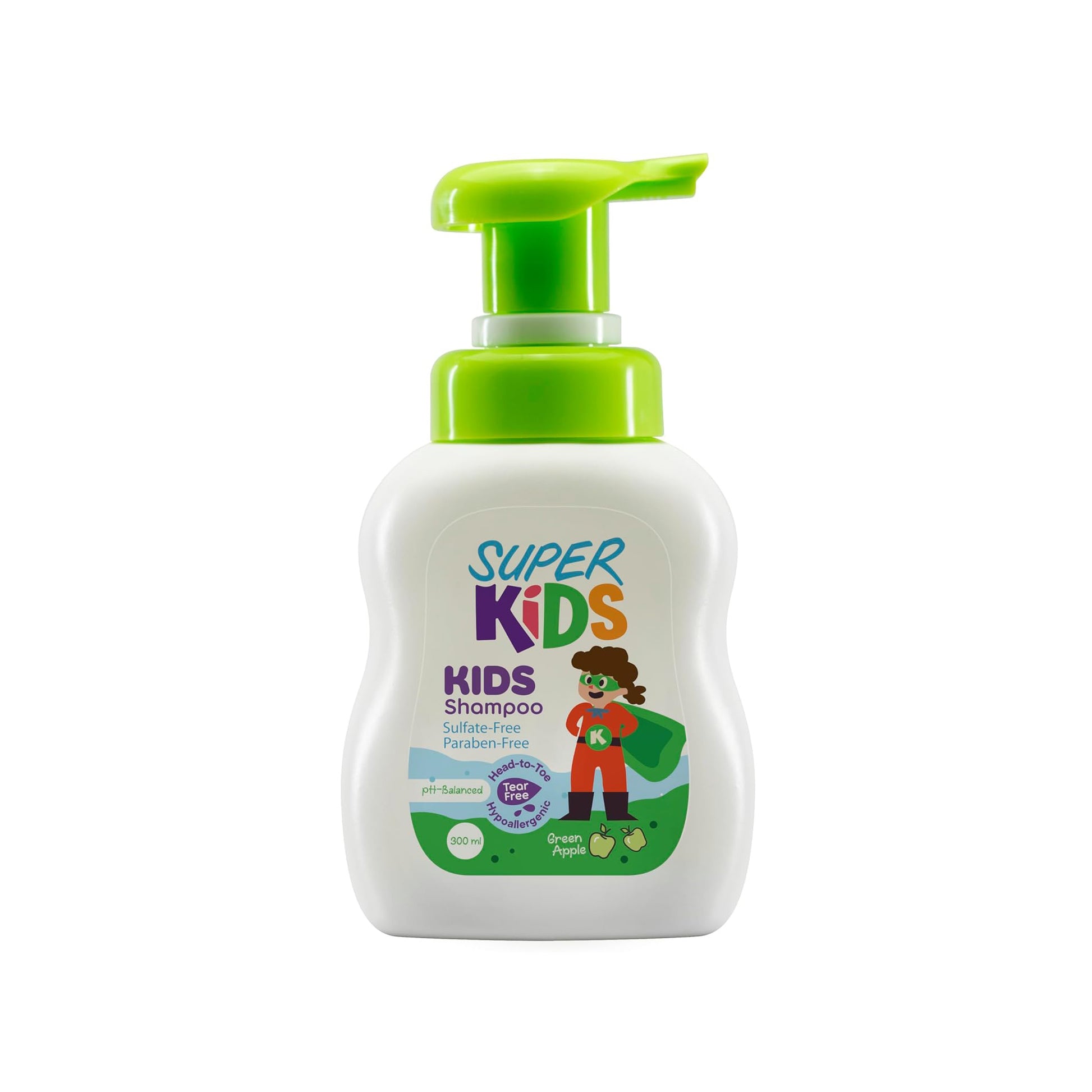شامبو الأطفال، بنكهة التفاح الأخضر، خالٍ من كبريتات لوريل الصوديوم، والسيليكون، والبارابين، والدموع. شامبو سوبر كيدز للأطفال، من سنتين إلى ١٤ سنة، هو الشامبو الأمثل لتنظيف شعر طفلك بعمق. آمن للاستخدام لأنه خالٍ من الكبريتات، والسيليكون، والبارابين، والفثالات، والدموع. متوفر بثلاثة عطور: التفاح الأخضر، ومخفوق الفراولة، والمانجو الأفريقي. اقرأ قصص قيمنا الأساسية في الجزء الخلفي من زجاجات الشامبو.
